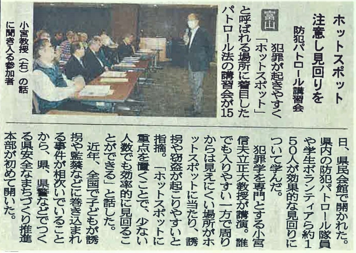 犯罪を犯す人に注目してその原因を除こうとする犯罪原因論に対し、犯罪が起きやすい「場所」に注目して予防につなげるという犯罪機会論を提唱する。欧米では犯罪予防や被害者保護などの観点から、1980年代以降に盛んになった考え方だ。「不審者がどんな人間かはわからないし、何か事件が起きる前には、効果的な防犯活動はしにくい。でも場所を管理する方策はあるし、行政も関与できる」と意義を語る。